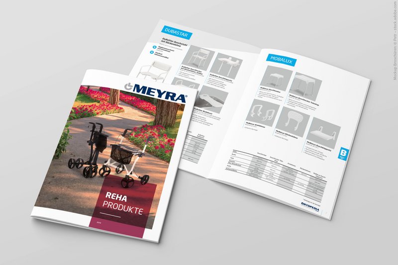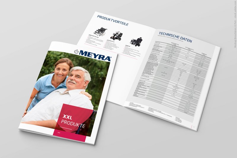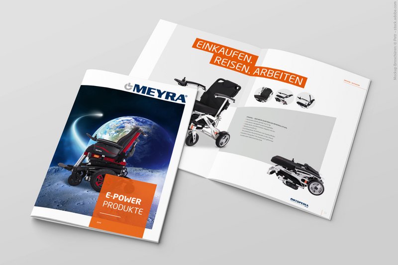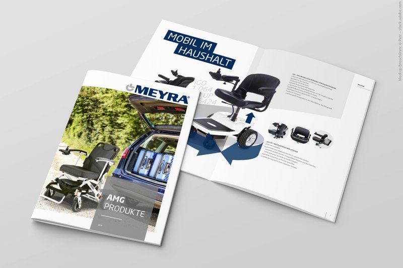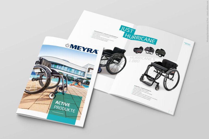Auf einen Blick genau das finden, was man sucht: Für MEYRAs Produktfamilien – E-Power, Active, AMG, Reha und XXL – gestaltete die bwc Werbeagentur fünf neue Broschüren in gleich vier Sprachen. In den klar strukturierten Broschüren mit Umfang von 12 bis 36 Seiten, finden sich alle Produkteigenschaften der neuen und bewährten MEYRA Family-Produkte inklusive technischer Daten und detaillierter Zusatzinformationen wieder.