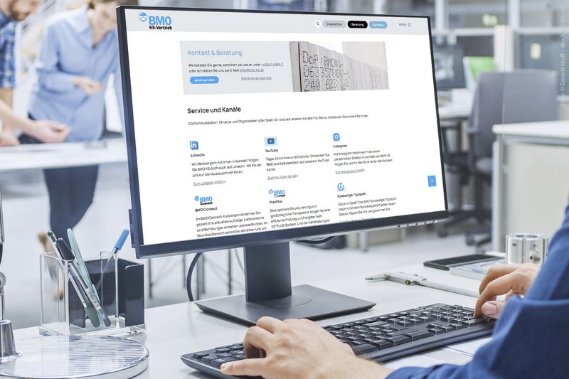 Content-Management-Systeme für Websites brauchen regelmäßig Updates, um die Website sicher und stabil am Laufen halten zu können - so auch das TYPO3 der Website von BMO KS-Vertrieb. Das Unternehmen nutzte den Zeitpunkt, um auch die Inhalte der Website umfangreich zu reduzieren und umzustrukturieren. Außerdem entschied sich BMO für ein weiteres Update: Mit modernen Elementen, großzügigen Farbflächen und einer in drei Bereichen überarbeiteten Navigation wirkt auch das Design der Website wie neu.