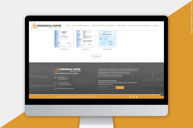 Die Friedrich Hippe Maschinenfabrik + Gerätebau GmbH ist Spezialist rund um die Bereiche Bahninfrastruktur, Produktlösungen und Sicherheitstechnik. Das mehrfach zertifizierte Industrieunternehmen bekommt mit der neuen responsive Website von der bwc eine neue Online-Präsenz, die sich sehen lassen kann.